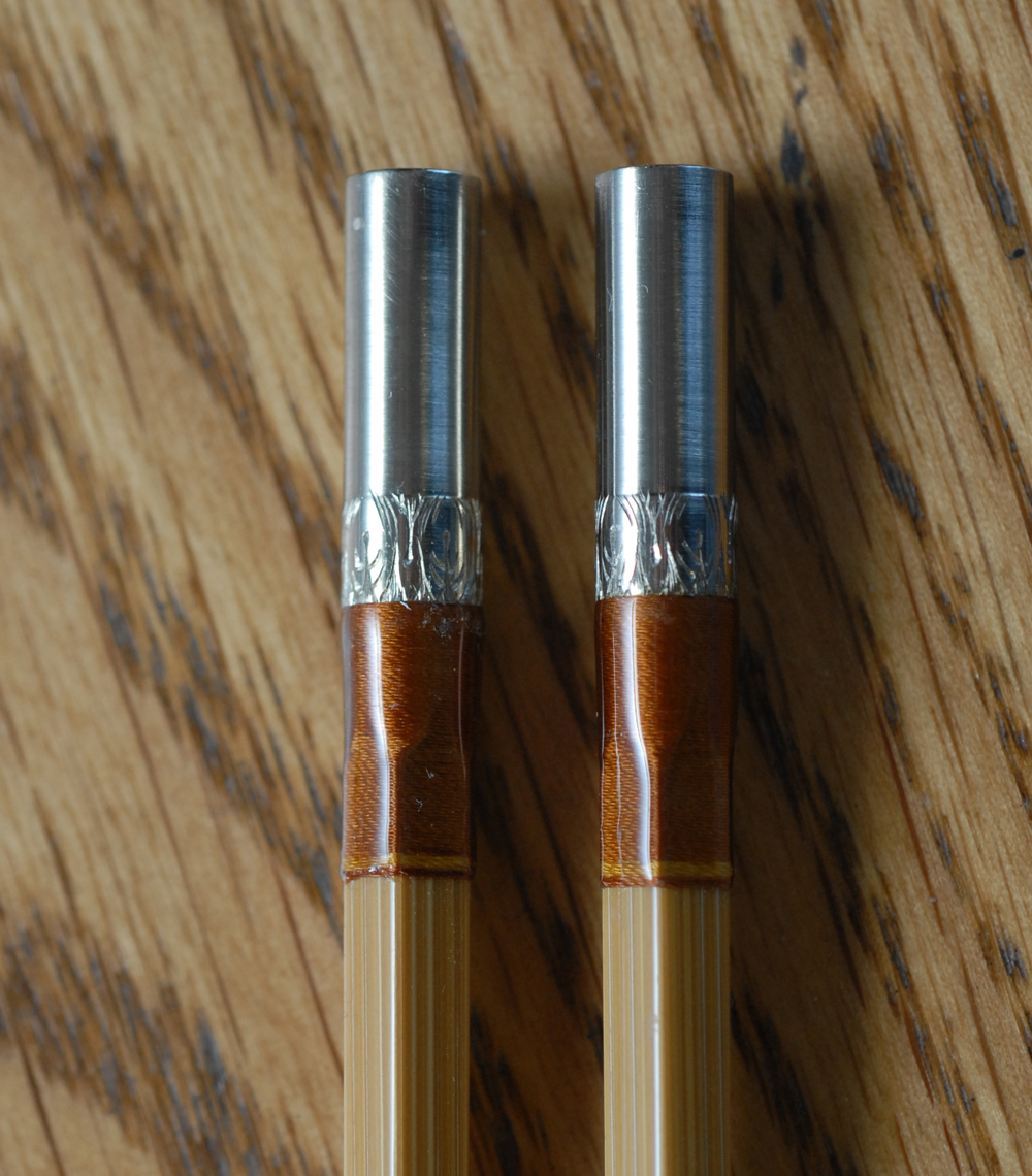 This is a pentagonal (5 sided) rod, and has a medium/fast action. As with all our rods, it comes with a quality rod bag and custom aluminum tube with solid brass ends complete with our name and logo. Pictured is serial #1 (of 12) in blond. Claude made his rods in either blond or ammonia treated (even brown) color, so accordingly, we offer both. The rod is priced at $2,499.99. Please call to reserve yours. Only twelve will be handcrafted. Read why we and others believe pentagonal (5-sided) rods are superior to even sided rods. Please call for more information. |